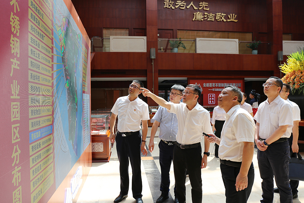 张永宁一行参观了集团供销中心、研究院、家具展厅、电子展厅等场所,并观看了企业宣传片。参观过程中,张永宁认真询问了企业不锈钢产业分布情况和“RKEF+AOD”双联法冶炼不锈钢的先进工艺,陈庆科予以详细汇报。