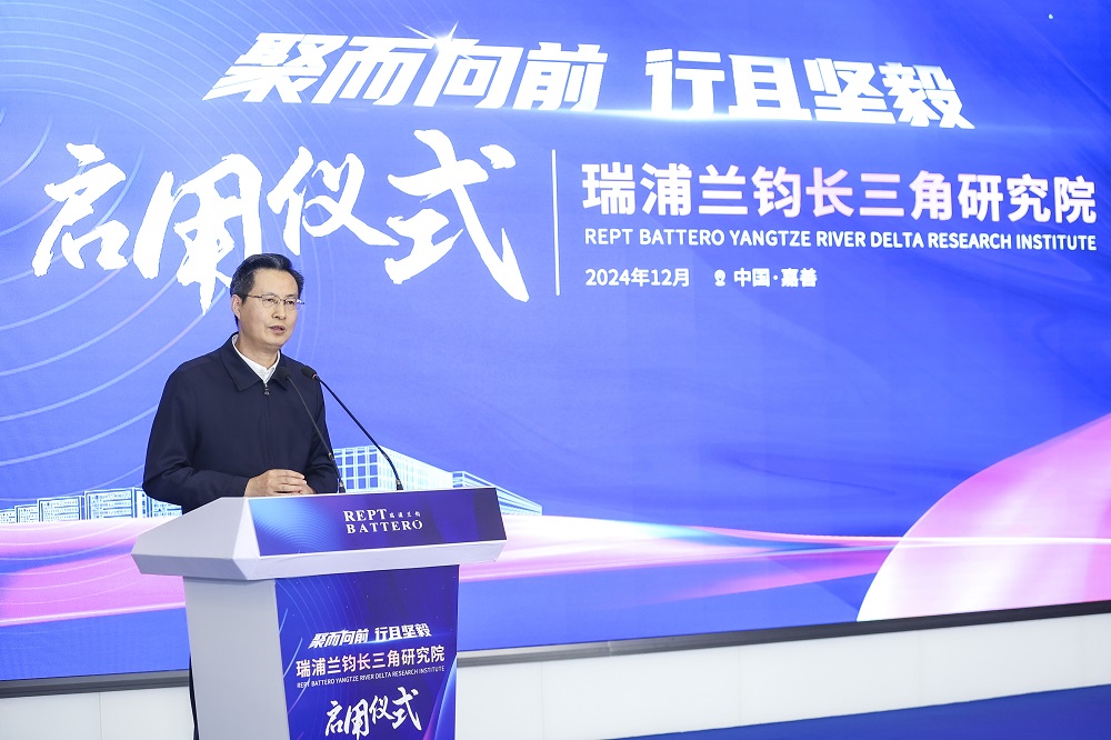 项光达主席在仪式中发表致辞。他提到,创新文化和创新制度是企业拉开市场竞争差距的关键。企业发展应秉持长期主义战略“卷技术”,重视技术研发。瑞浦兰钧长三角研究院的成立不仅是企业自身技术和经营发展的需要,更是响应高质量发展战略、推动能源结构转型的重要举措。