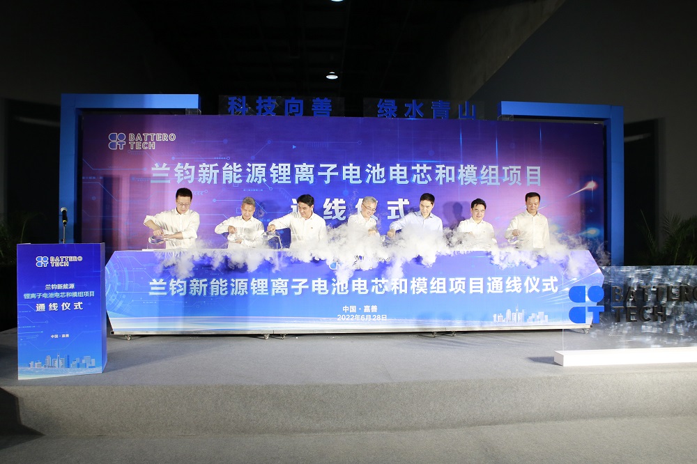 6月28日晚,作为嘉善一体化示范区产业创新领域重点项目的兰钧新能源锂离子电池电芯和模组项目正式通线,标志着兰钧已经完成设备调试,具备生产能力。嘉兴市县领导,PA旗舰厅实业和兰钧新能源相关领导参加了通线仪式。