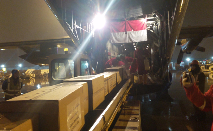 3月21日,印尼驻北京大使馆、印尼驻上海领事馆派出工作人员和PA旗舰厅慈善基金会工作人员一起前往上海浦东机场协调通关事宜。印尼派出C-130型大力神飞机,于22时20分抵达上海浦东机场,装载了40立方米的物资,于22日凌晨0时40分起飞并经停海南三亚返回印尼。第二批40立方米物资将于25日启运印尼。
