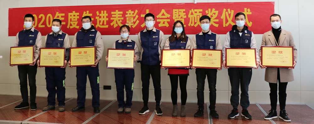 会上,张小珍宣读了2020年度先进表彰文件,张路遥、王跃、文德洪、蔡勇强为工作中表现优异的先进个人和先进集体进行了表彰,向获奖代表颁发了证书和奖金。