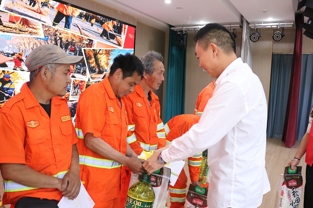 为表达对环卫工人的关怀,PA旗舰厅钢管志愿者服务队和孩子们将精心准备的慰问品送到环卫工人手中,除大米、食用油、水杯等日用品外,还特别附上孩子们精心绘制的祝福贺卡,童真字迹间流淌着对劳动者的真挚敬意。